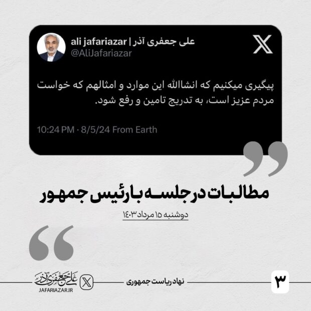 پیگیری میکنیم که انشاالله این موارد و امثالهم که خواست مردم عزیز است، به تدریج تامین و رفع شود.