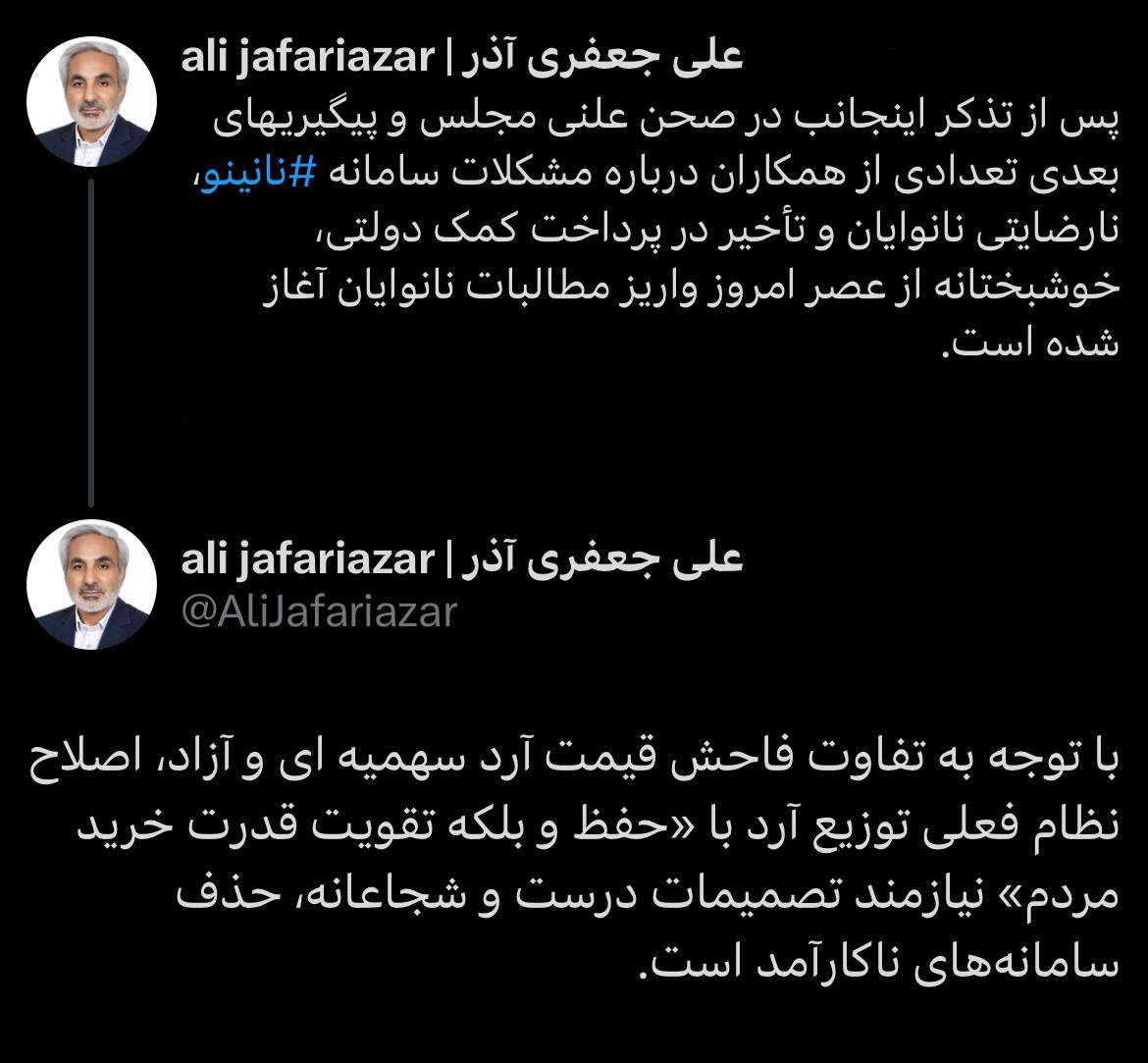 پس از تذکر اینجانب در صحن علنی مجلس و پیگیریهای بعدی تعدادی از همکاران درباره مشکلات سامانه #نانینو...