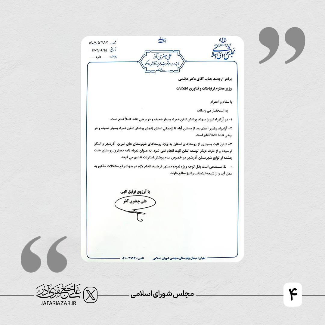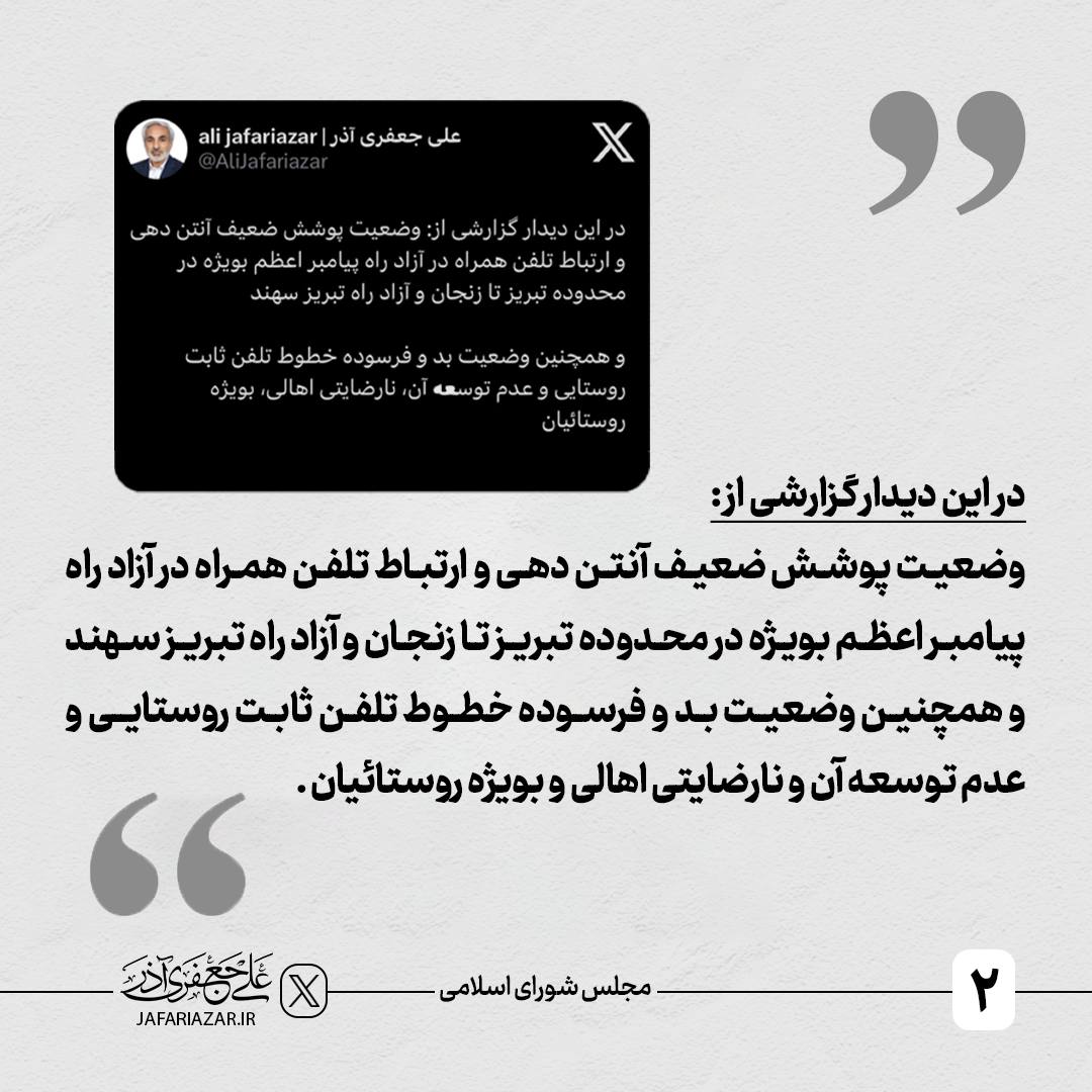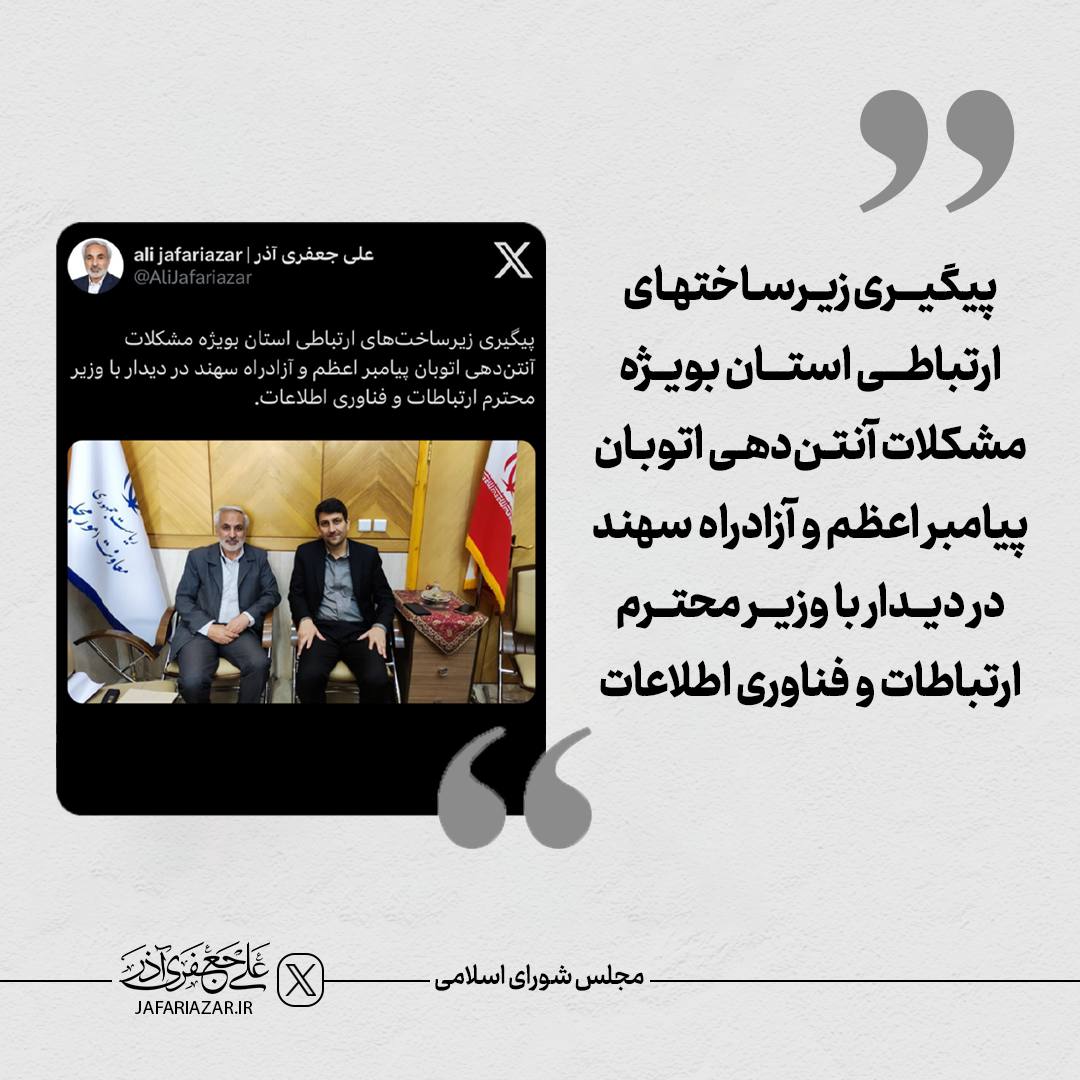 مشکلات آنتندهی اتوبان پیامبر اعظم و آزادراه سهند در دیدار با وزیر محترم ارتباطات و فناوری اطلاعات